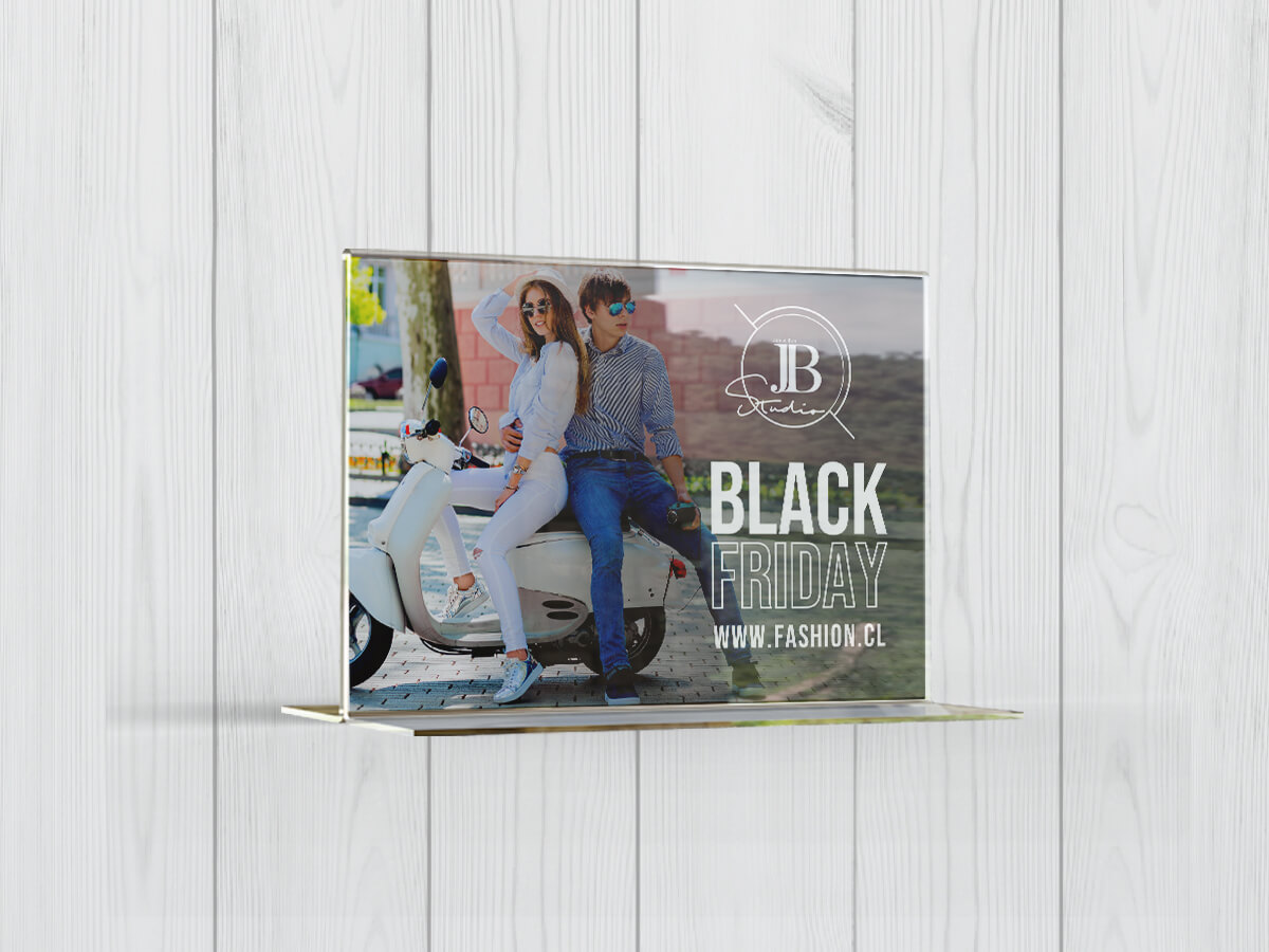 Portagrafica de acrilico horizontal o vertical, impresión por ambas caras, Tamaño: 21 x 29,7 cm